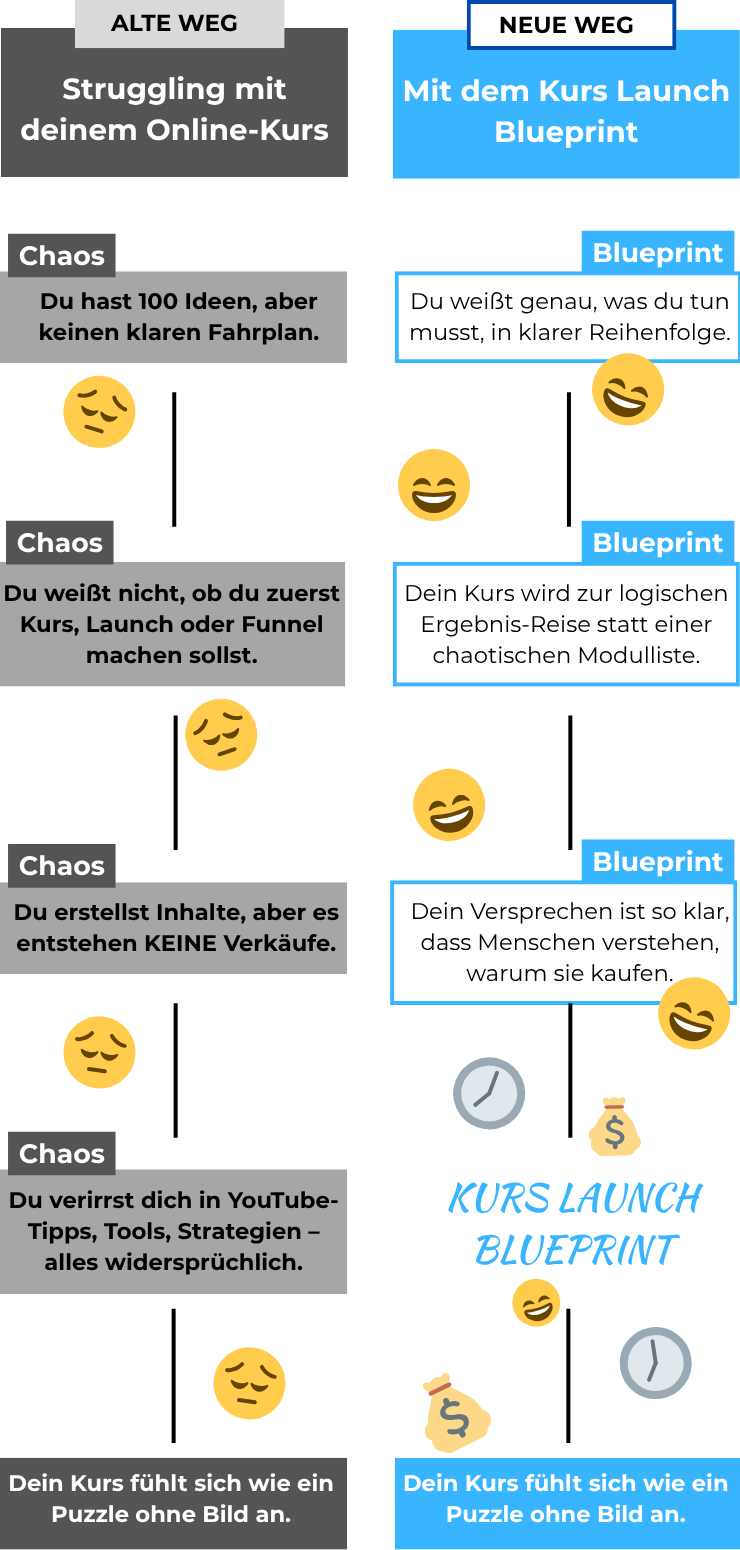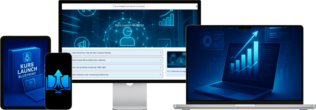 Der Kurs Launch Blueprint ist ein erprobtes 4-Phasen-System, das Coaches, Trainer:innen, Berater:innen, Expert:innen und Content Creator:innen zeigt, wie ein profitabler Online-Kurs mit Funnel & Launch als ein zusammenhängendes System funktioniert – ohne Technik-Details, ohne Overwhelm, ohne 100 Stunden YouTube-Recherche.